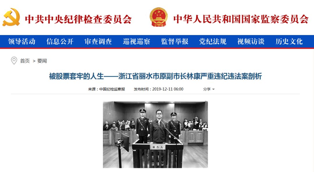 日前,中央纪委国家建委网站通报了前浙江省丽水市副市长林康受贿案的诸多细节。今年11月22日,林康因犯受贿罪,被判处有期徒刑14年,并处罚金300万而透视来看,盲目追求股市“翻盘”的心态,是这名曾经的政治新星最终走向陨落的重要原因之一。