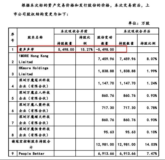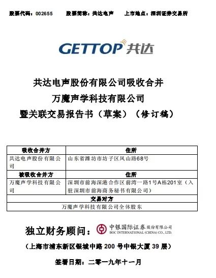 这一收购预案,最早在2018年11月14日推出。当时共达电声公告称,公司拟通过向控股股东万魔声学科技有限公司全体股东非公开发行股票的方式,换股吸收合并万魔声学,相关议案获董事会审议通过。