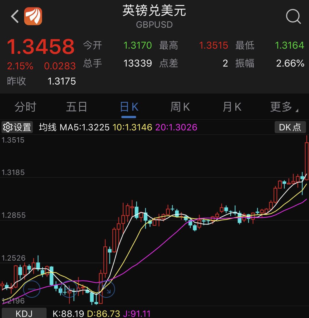 这与投票前的民调差距较大,约翰逊获得的优势远高于投票前的民调结果;这给英镑提供了强劲的上涨动能。英镑兑美元北京时间今日早盘狂拉350点,英国在美国上市的金融股盘后也出现跳涨。苏格兰皇家银行涨7.63%,巴克莱涨2.42%,劳埃德银行涨2.19%。