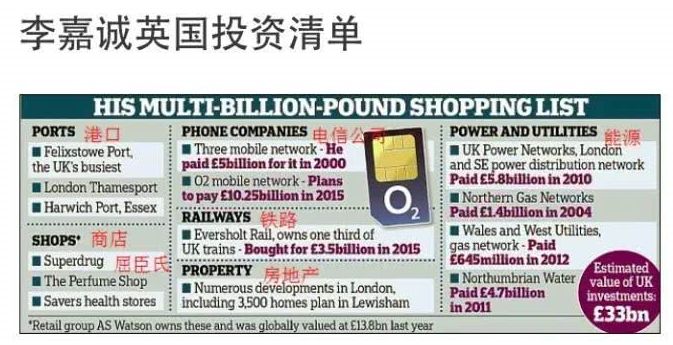 李嘉诚在英国投资的都是水电、港口、地产、零售、电信等基础产业,甚至有人说李嘉诚“买空了半个英国”。