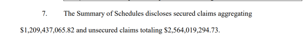文件显示,截至12月17日,贾跃亭身负的债务总计约为37.7亿美元,其中有抵押索赔(债务)约为12亿美元,无抵押索赔(债务)约为25.6亿美元。