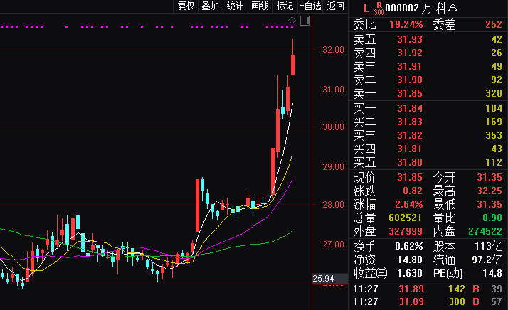 昨日晚间,万科公告,宝能最新持股比例降至4.9999998%。可以看出,宝能在加速减持万科,距离彻底退出仅一步之遥,“宝万之争”即将谢幕。今日早盘,万科大涨近4%,是近8个月以来的新高。