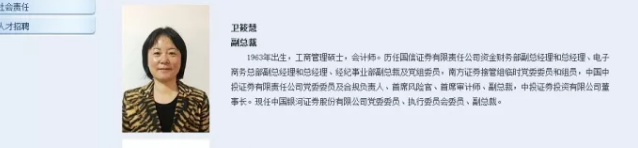 券商中国记者查看银河证券网站,目前在公司简介的“经营管理层”名单中,卫筱慧的个人资料已不在其中。