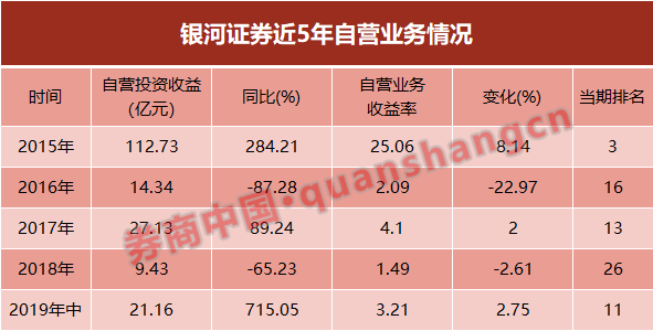 而在自营业务上,今年银河证券一桩“乌龙”事件令业内哗然。在科创板市场火热发展之际,银河证券自营账户却出现“弃购”科创板新股的情况,其自营账户也被中证协拉入“小黑屋”。对此,银河证券介绍,系负责交易人员7月2日未按指定时间进行网下申购操作,致使交易失败。