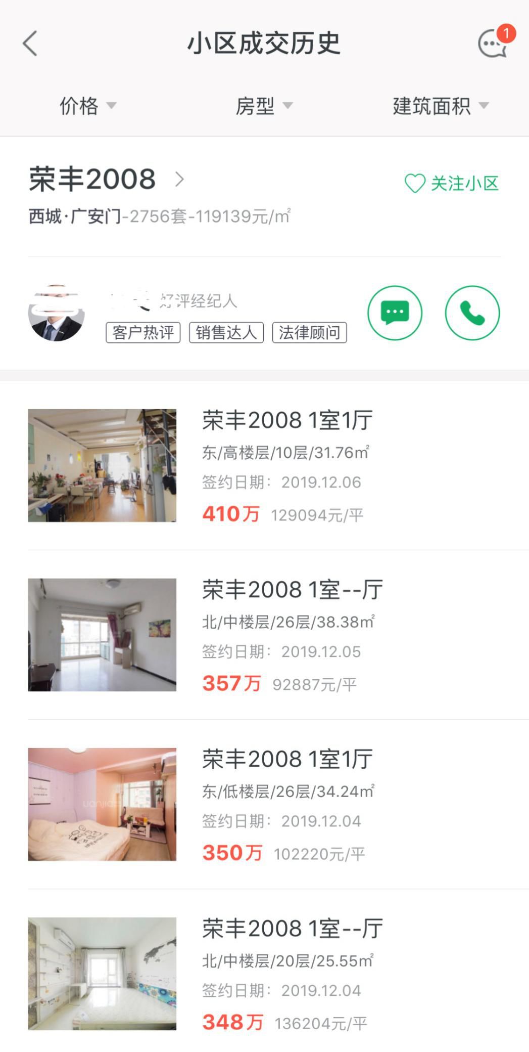 点开上图的“历史成交”后,可以显示该小区的历史成交价,如下图: