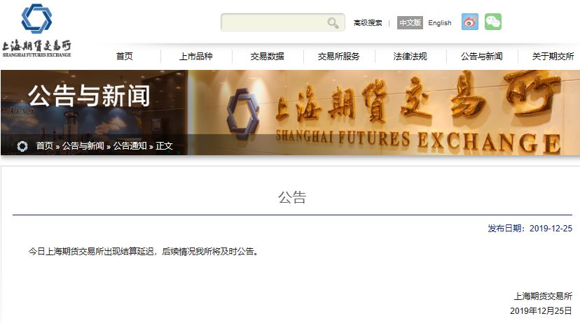 25晚间,上期所发布公告称,25日上期所出现结算延迟,后续情况将及时公告。