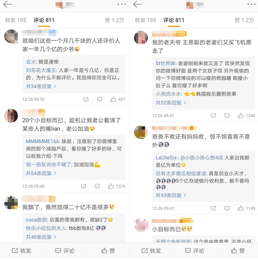 12月26日,王思聪旗下投资平台普思投资官网公布了熊猫互娱投资纠纷处理结果,称与数十位投资人全部达成协议,近20亿元巨额损失全部由普思资本及实控人自己承担。这一重磅消息瞬间推上微博热搜,网友不禁纷纷调侃:国民老公又回来了!