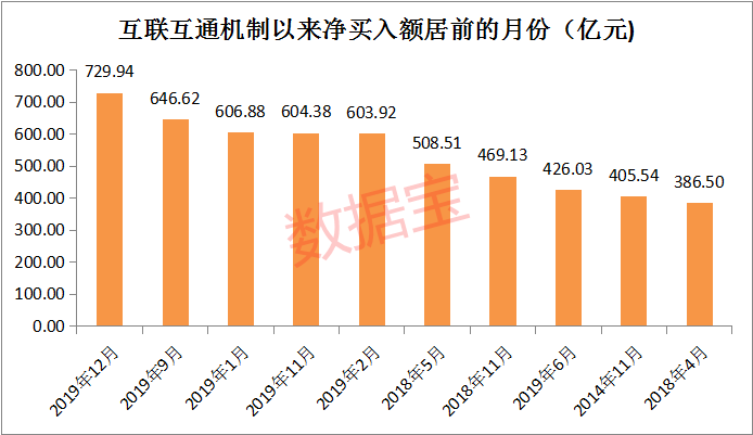 A股市场回暖的同时,外资也在加速买入。证券时报·数据宝统计显示,12月份以来,北上资金合计净买入729.94亿元,创互联互通机制以来月度新高,全年净买入额超过3500亿元。虽然在2019年最后一个交易日小幅净卖出,但在此前30个交易日持续净买入,离历史最长纪录仅差2天。