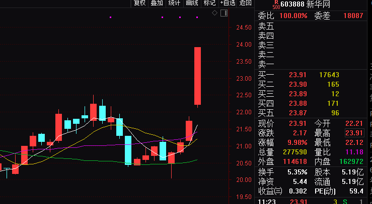 与哔哩哔哩合作跨年晚会的新华网(603888)1月3日强势涨停,收报23.91元,最新市值124.1亿元。