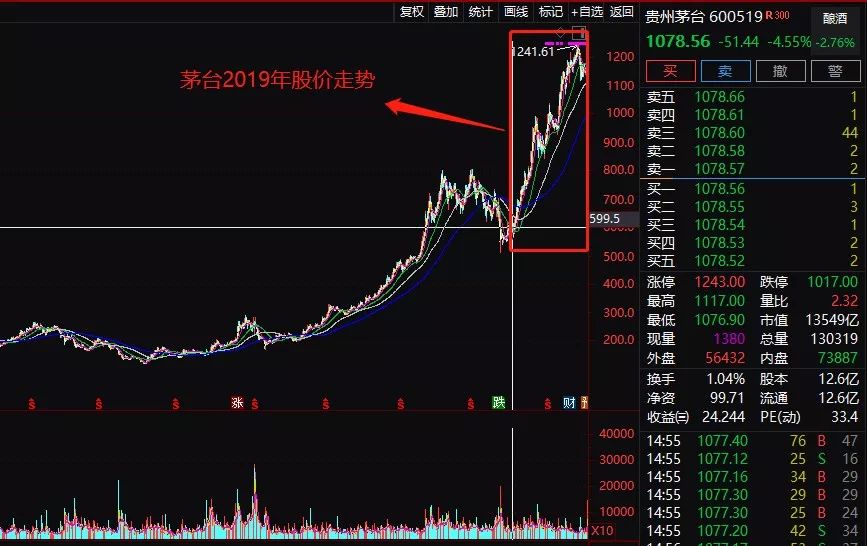并且由于茅台市值涨幅大,仁怀市的市值排名从2018年底到2019年底上升了2位,从第8升至第6,超越了佛山和南京两个城市的1.28万亿元和1.27万亿元。而1.49万亿市值,相比武汉、厦门等知名城市7404亿元、5059亿元,已经是2倍于武汉,2.94倍于厦门。