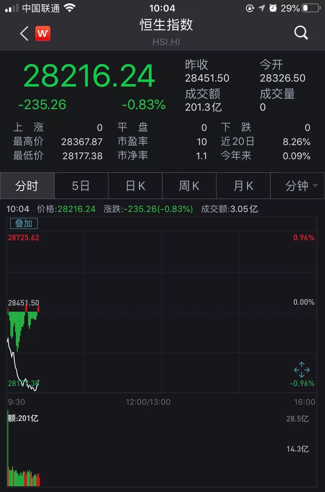 香港恒生指数开盘跌0.44%,现跌0.8%左右。