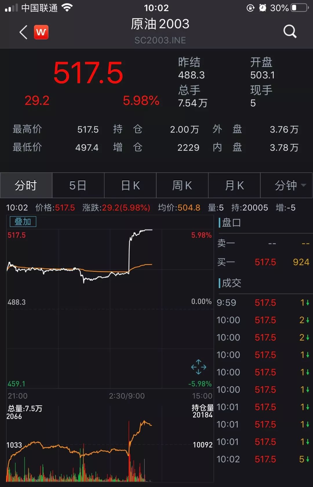 国内商品期货今日开盘,上期所原油期货主力合约触及涨停,涨幅5.98%。