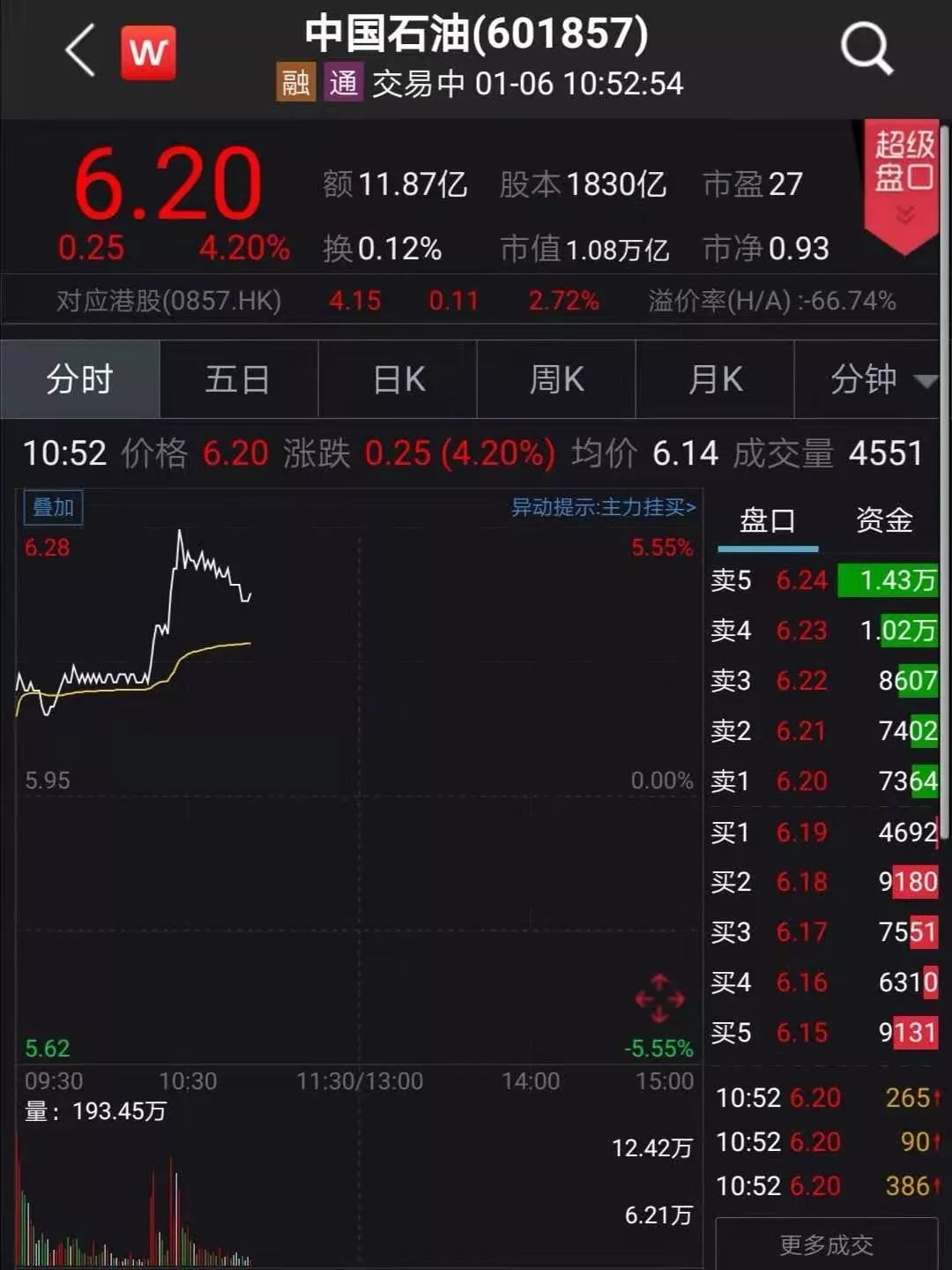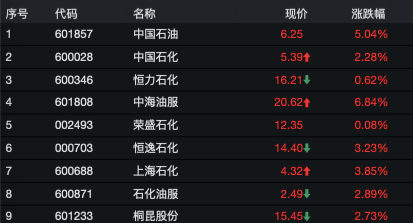 中信一级行业石油石化指数涨近3%,40只个股几乎全部上涨,三桶油纷纷大涨,中石油涨逾5%,中石化涨超2%,中海油涨幅近7%。