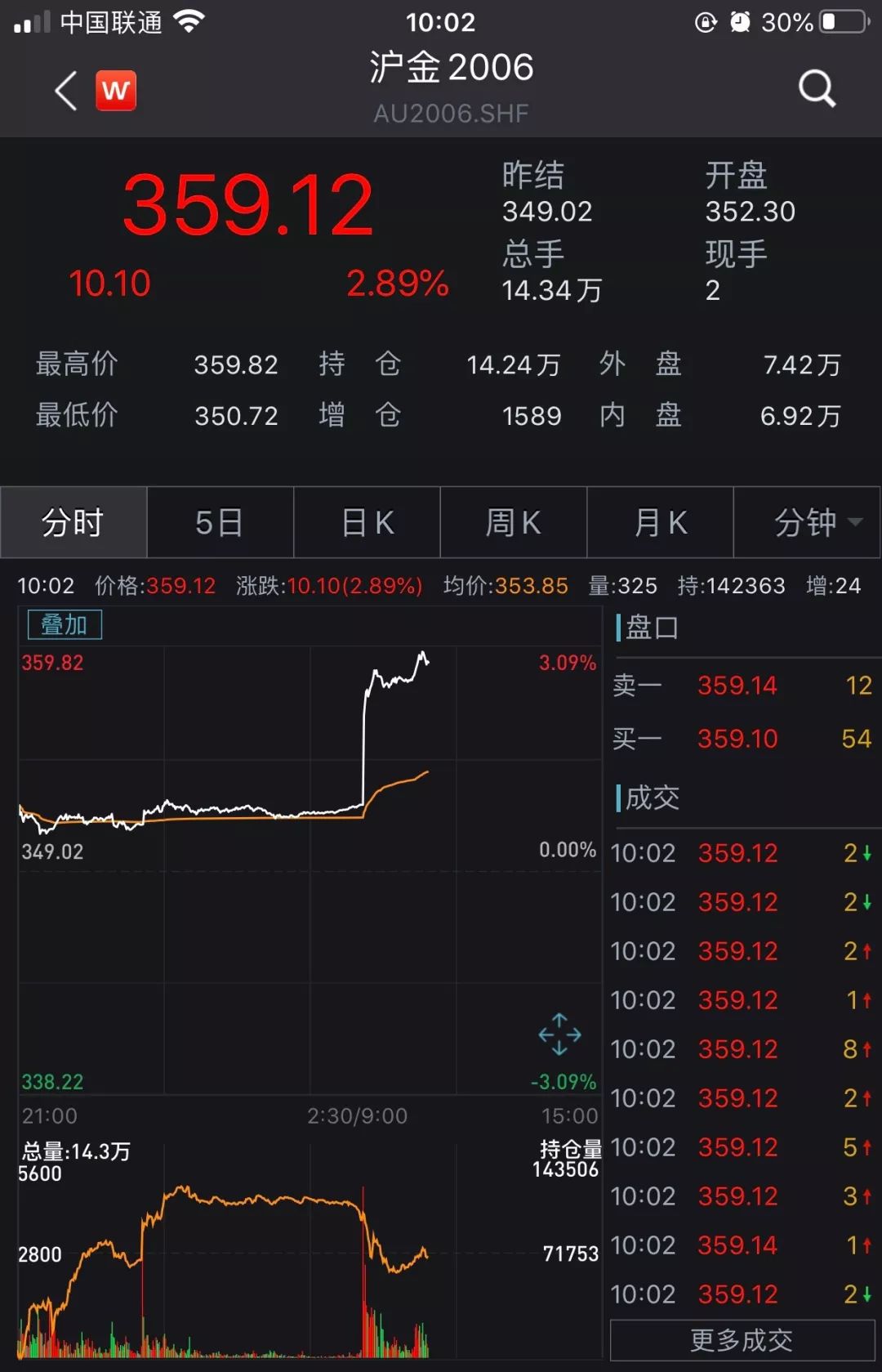 沪金主力合约涨幅近3%。