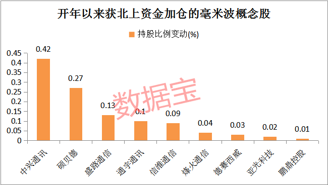 虽然市场当前对毫米波技术的关注度不够高,但据相关人士分析,2020年或将掀起毫米波技术应用的浪潮。外资提前埋伏公司值得重点关注,数据宝统计显示,与去年末相比,9股获北上资金加仓。