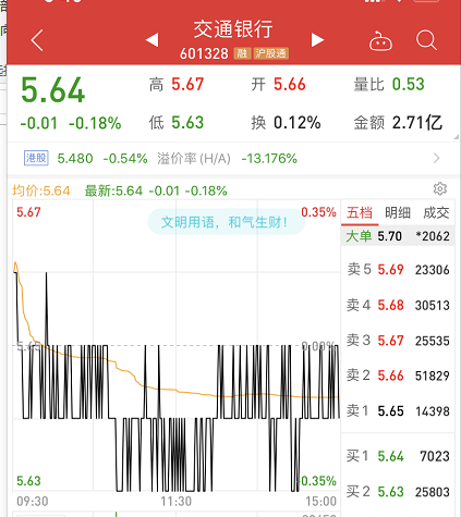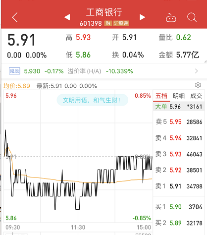1月10日收盘,工行A股股价为5.91元。