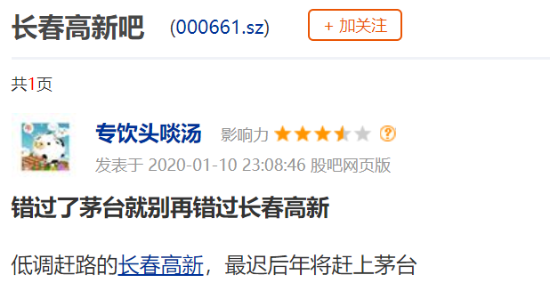 自2019年初以来,长春高新股价从不到200元升至500元附近,期间累计涨幅超180%。对于长春高新的惊艳表现,股吧里有股民竟然大胆喊出:错过了茅台就别再错过长春高新。