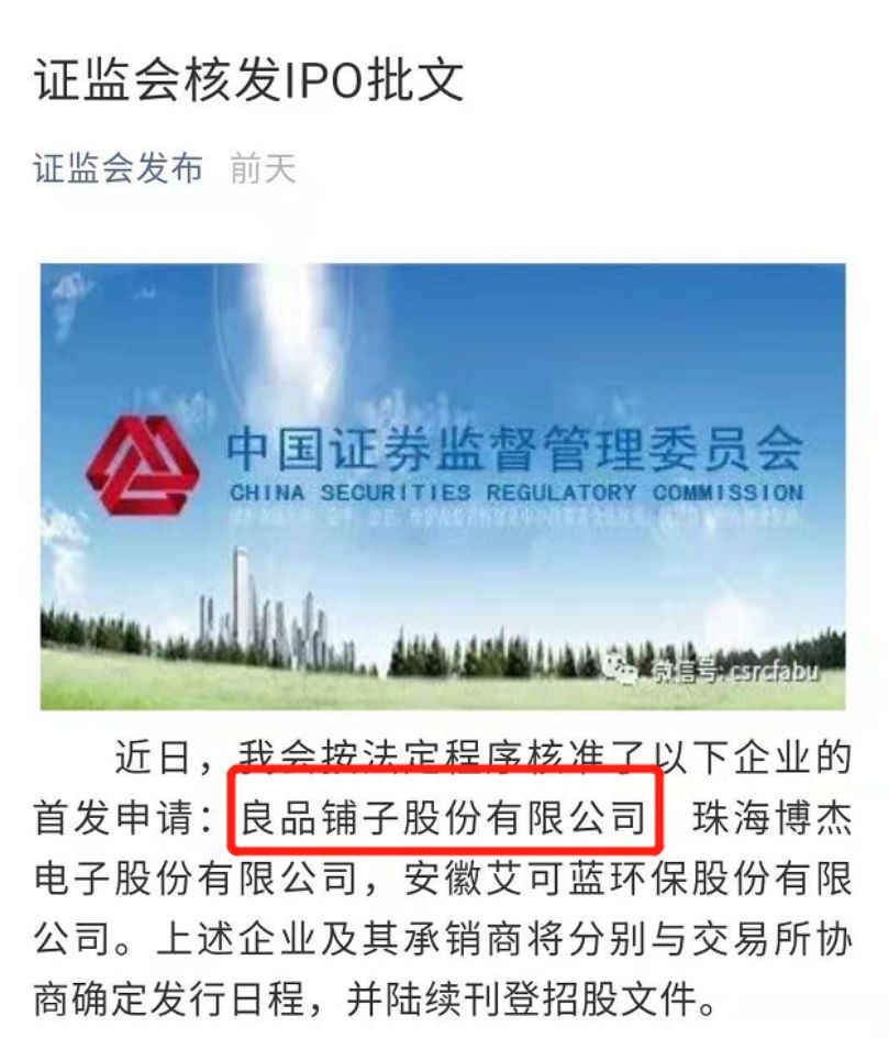 2018年6月,良品铺子向证监会递交IPO申请材料。历时500多天的等待,良品铺子最终顺利过会并拿下批文,不久之后将正式在A股市场亮相。