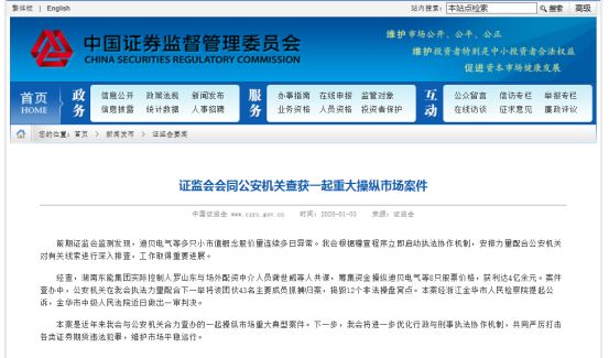 证监会会同公安机关合力查办了一起重大操纵市场案件:捣毁12个非法操盘窝点,抓捕归案了43名主要成员。31人团伙作案,恶意操纵了8只股票价格,获利金额达4亿余元。
