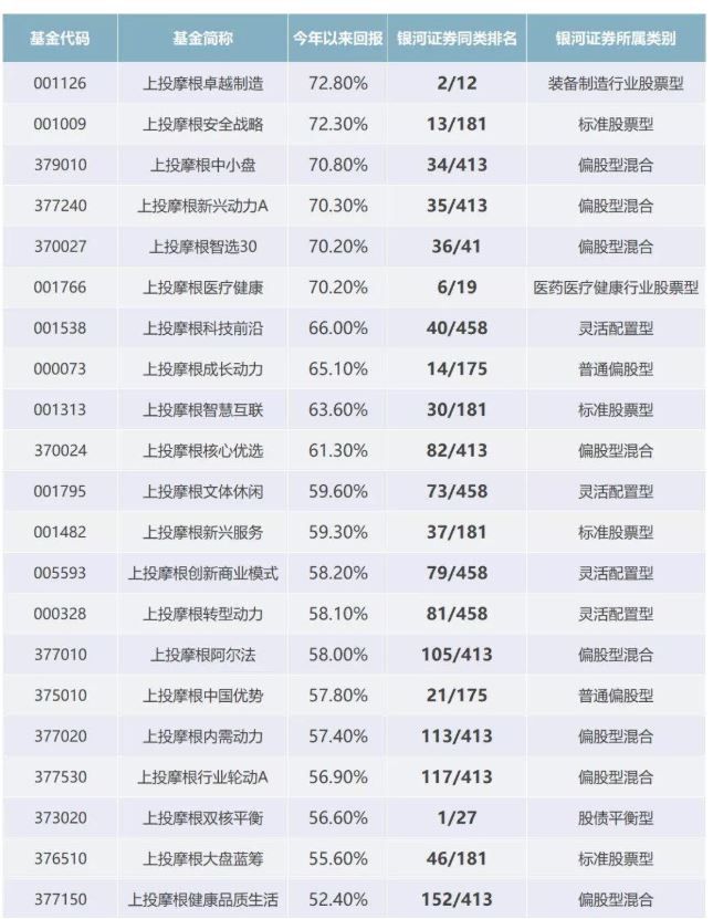 银河证券数据显示,2019年上投摩根旗下股票基金取得61.1%的平均收益,6只基金产品涨超70%,10只基金产品涨超60%,累计多达21只产品斩获了50%以上的回报,其中7只基金回报在同类产品中排名前10%。