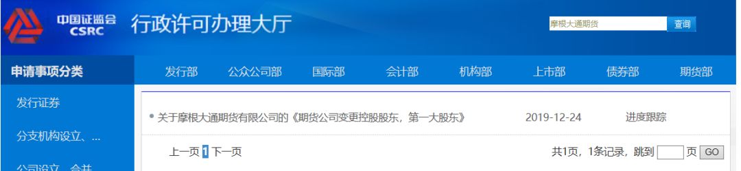 2019年12月24日,摩根大通期货向监管提交申请材料,拟申请变更控股股东。