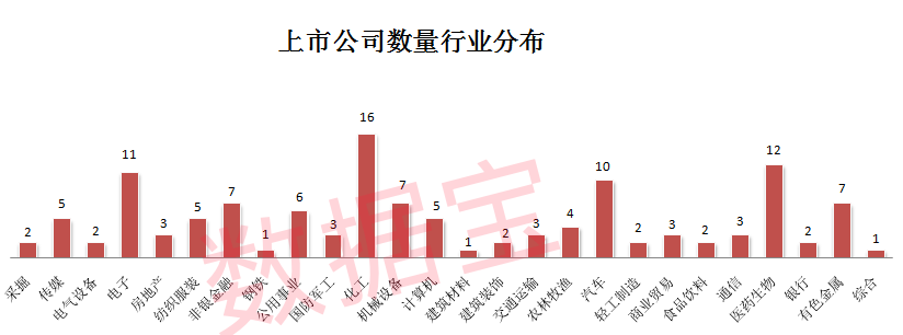 扒开数据来看,这些上市公司分布在26个行业里,排名前三的行业依次为化工、医药生物、电子。