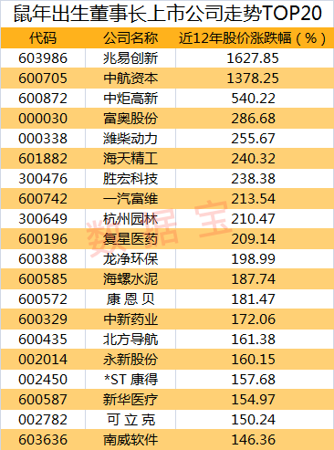 鼠年出生董事长掌管21个行业龙头