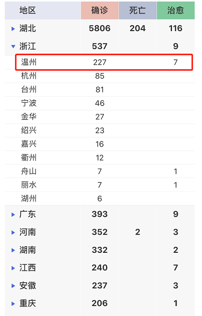 湖北之外,浙江确诊病例537例为各省最多,温州227例远超北上广深!