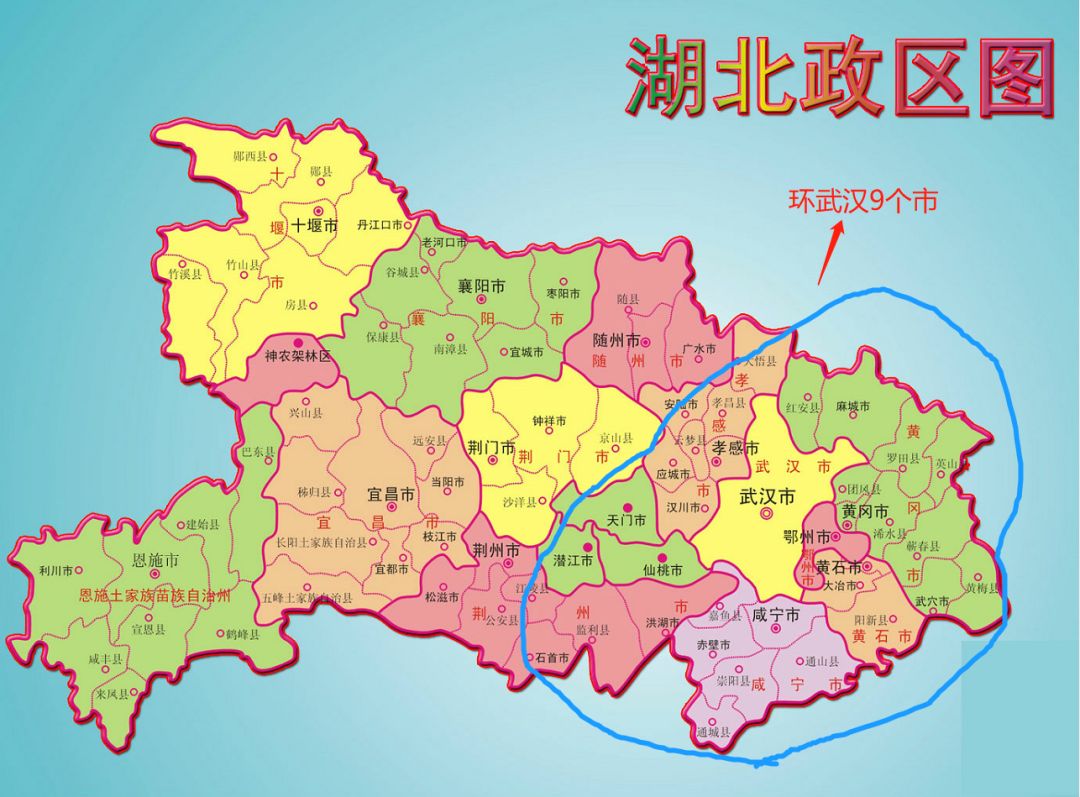 武汉市周边9市分别是,6个省辖地级市:孝感、黄冈、咸宁、黄石、鄂州、荆州,3个省直管县级市:仙桃、天门、潜江。从地图上来看,武汉周边的9个城市面积占武汉之外湖北省的不到二分之一,确诊病例却有三分之二集中在武汉周边,特别是孝感和黄冈两市!