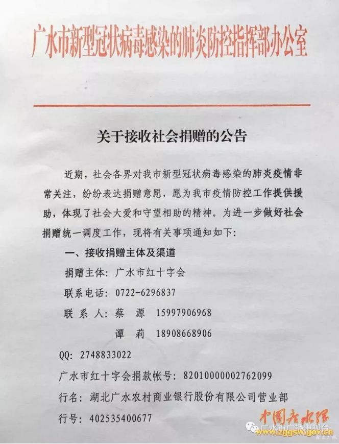 恳请各级组织向广水支援医疗物资