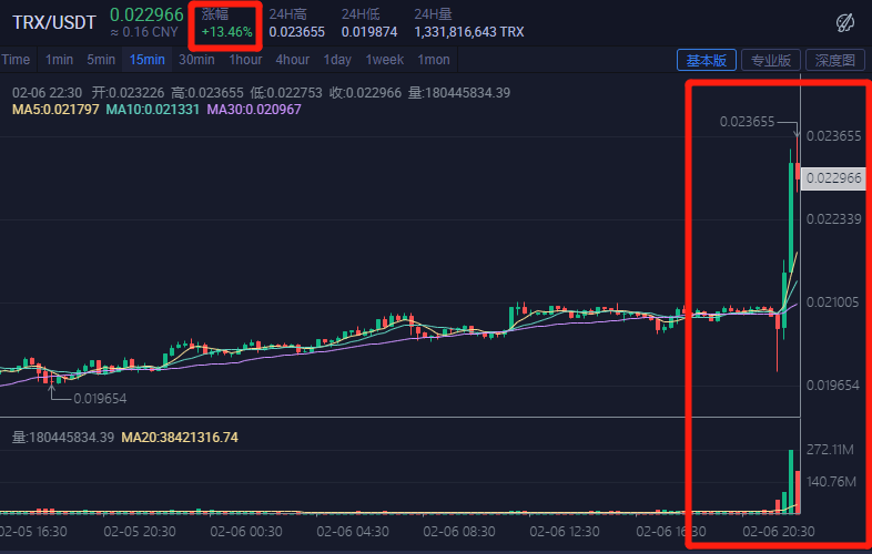 消息出来之后,孙宇晨发行的数字货币波场币,瞬间暴涨超13%。