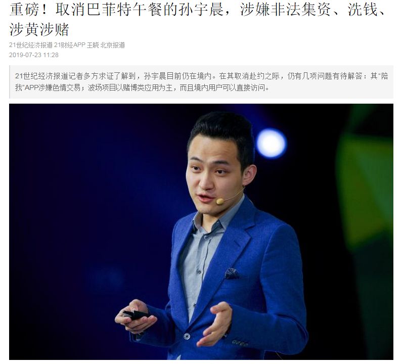 不过,在宣布取消与巴菲特的午餐会面后一天多时间里,他便陷入“洗钱”、“非法集资”、“边境控制”等旋涡里。