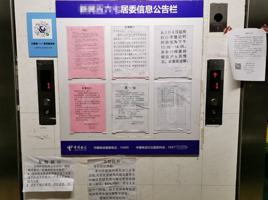 (图3:居委会贴在电梯口的各种“抗疫”资料)
