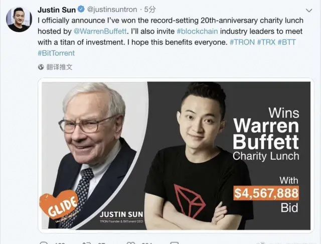 孙宇晨花费重金与巴菲特会面,每一个涉及的话题可能都带有极强的利益。