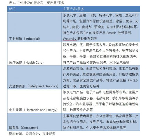 3M公司全称为 Minnesota Mining and Manufacturing(明尼苏达矿务及制造业公司),凭借胶带发家的3M,实际业务非常广泛,是个典型的多元化公司,产品几乎涵盖了各个层面,口罩顶多算是其工业产品的配套小“周边”而已。