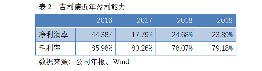 2019年吉利德的净利润率为23.89%,毛利率为79.18%。单从这项数据来看,吉利德的毛利率甚至高于德国制药巨头默克集团的69%(表2)。