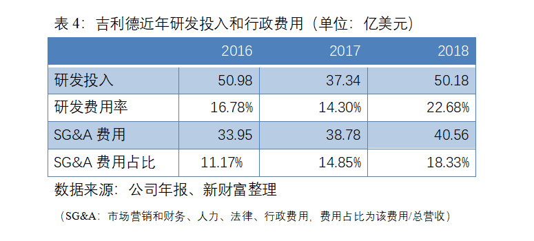 值得一提的是,吉利德的研发和营销费用都非常高,这是医药行业的特性,特别是吉利德还是个创新药企业,自然研发费用和营销费用“量价齐高”(表4)。