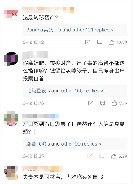网友们纷纷讨论:这是真分道扬镳,还是为转移财产?