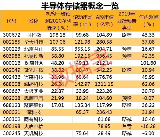 多股受益于存储器产业高景气