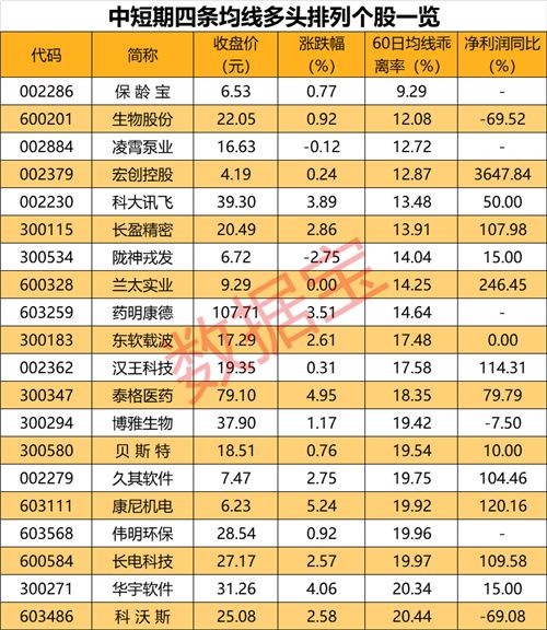 保龄宝等142股均线近日呈多头排列