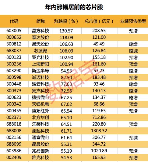 证券时报·数据宝统计显示,今年以来,芯片股表现强势,平均涨幅达17.99%,并且有6只芯片股涨幅超100%。