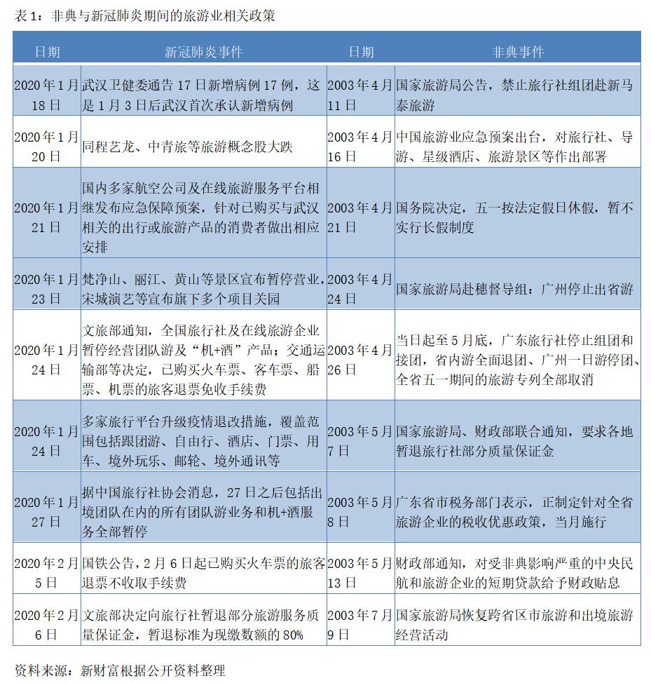 为了减轻中小企业主负担,华住、首旅如家、开元、亚朵等酒店集团陆续宣布了减免加盟商管理费计划,万达商管集团、美凯龙(601828)、龙湖集团(00960.HK)等商业物业企业已推出减免或减半铺面租金等措施,深圳市也出台了相关政策。未来或有更多利好给到旅游业。参考非典时期,2003年5月起,国家税务总局便对民航旅客运输业务、旅游业和铁路旅客运输收入免征营业税、城市维护建设税和教育费附加;对餐饮、旅店、旅游、娱乐、民航、公路客运、水路客运、出租汽车等行业减免部分政府性基金。