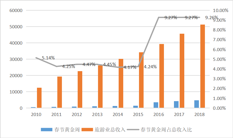 图1:春节黄金周收入占旅游业全年总收入的比例