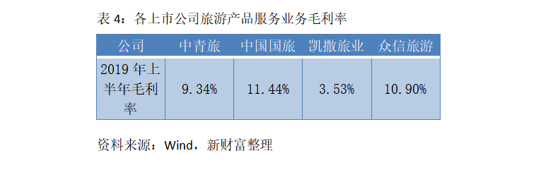 相较之下,依附于各OTA平台之下的供应商们或承担着更大压力。一方面,各供应商为了事先拿到热门的旅游景点、航线、酒店,需要提前垫付资金,并且旅行社毛利率普遍偏低(表4)。另一方面,供应商与OTA平台之间并不平等,大部分供应商依附于垄断流量的OTA平台生存,“退改潮”下,各OTA企业也力求为供应商减少损失。