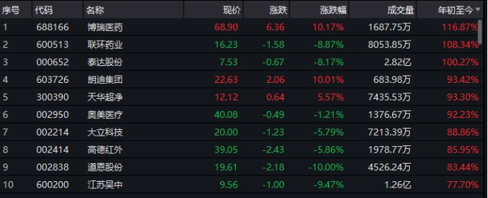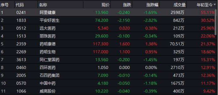 Wind数据显示,恒生医疗保健(HSHCI)指数年初至今涨幅为9.47%,位于恒生主题指数涨幅排名第二,指数成分股35家医药企业涨幅超过20%的就有5家。