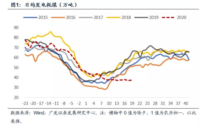 分析6大发电集团日均耗煤量发现,其一般在春节前七天开始逐步下降,在农历初一至初七之间均处于较低水平,此后整体呈现稳步提升。从2017-2019年的数据来看,正月十五的日耗煤量较春节当天增长分别为22.3%、23.2%和41.5%,而2020年正月十五的的日耗煤量较春节当天下滑16.7%,证明疫情带来的假期延长、远程办公及停产等影响对区域发用电需求影响十分显著。研报认为,当前发电煤耗仍处于较低水平,沿海地区复工进度仍然相对较低。