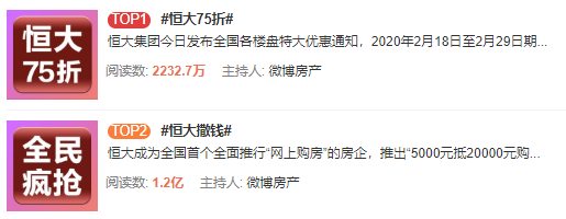 消息出来之后,#恒大75折卖房##恒大撒钱#立马冲上微博热搜。