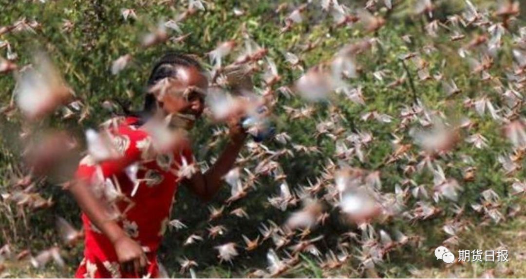 2月10日,FAO呼吁各国加大援助受蝗虫威胁的国家,该组织称已募得2100万美元援助资金,但与所需的7600万美元仍有较大差距。粮农组织官员表示,蝗虫数量在一年半内增加了6400万倍。据估计,肯尼亚、埃塞俄比亚和索马里三国的蝗虫已达到3600亿只。这些蝗虫破坏力空前,多地出现粮食短缺。