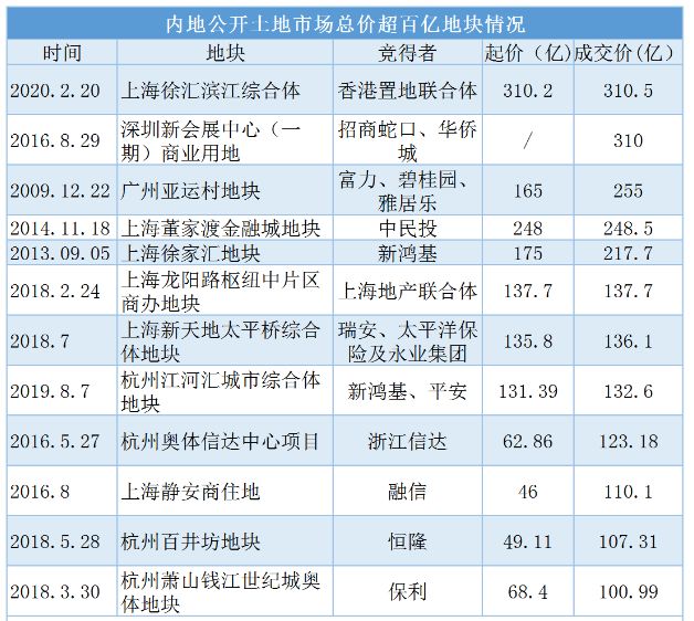 中国内地310.5亿“新地王”诞生