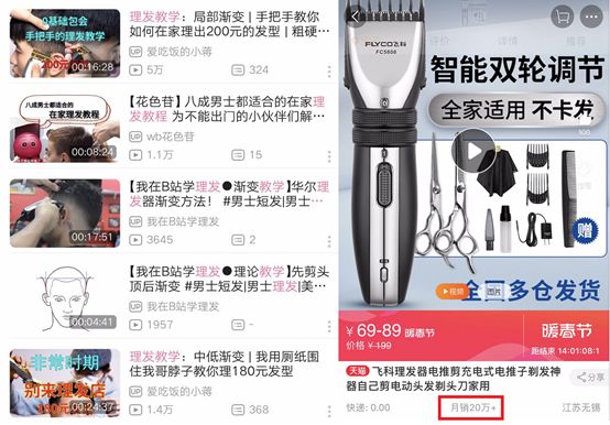 B站等视频平台也有不少理发大师上传了理发教学,这也间接带动了理发器的销量。淘宝平台最高月销量商家卖了20万件,其他商家的月销量也纷纷上万。多家理发器销售商乐开了花,理发器大受欢迎使得近一周销量快抵得上以往一年销量,有些品牌的库存甚至已被清空,正在安排补货。